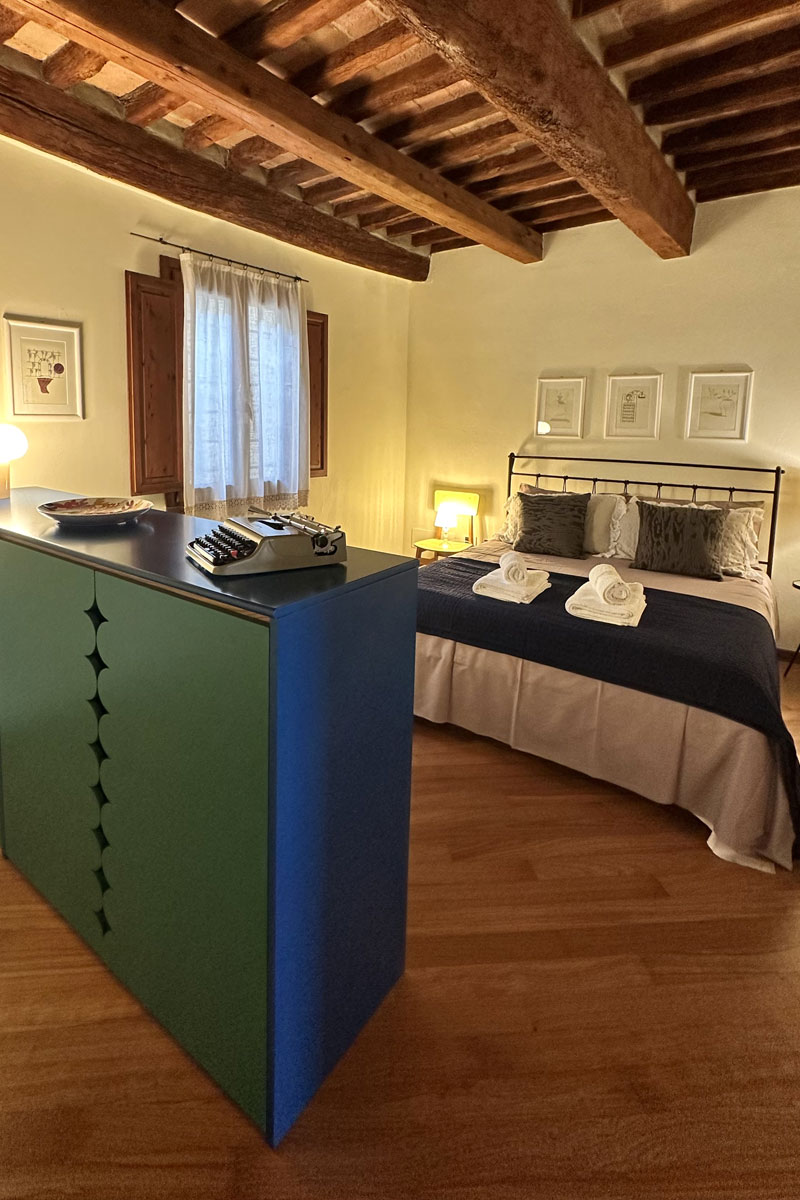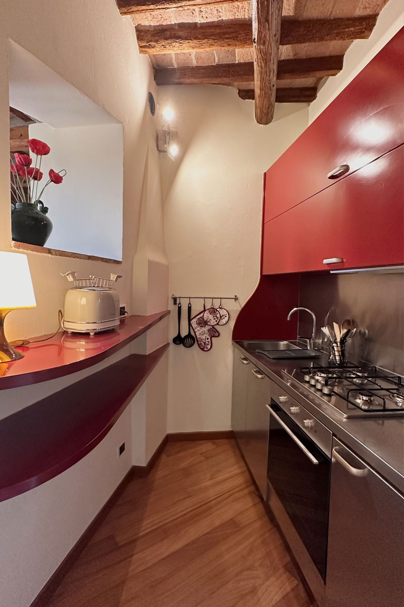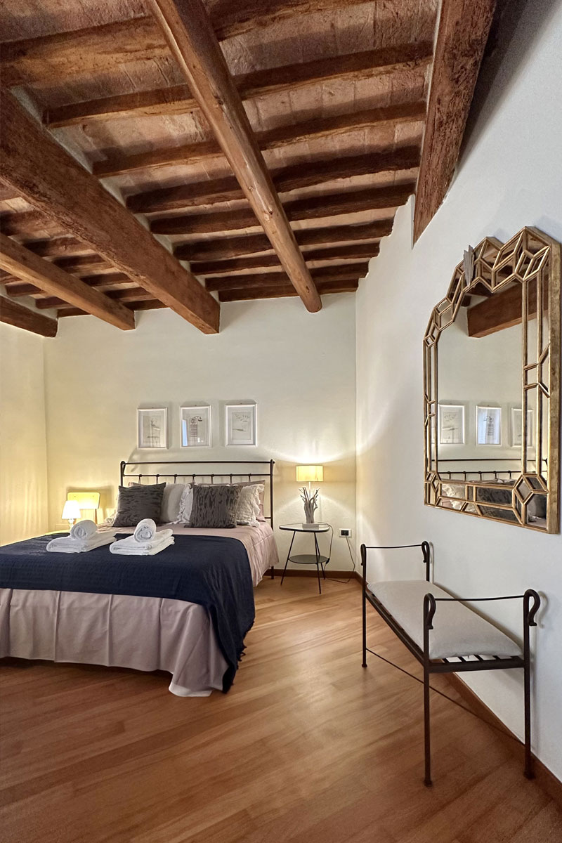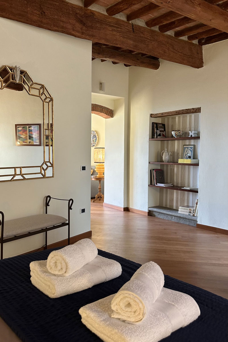 Un appartamento di 80 mq luminoso e accogliente, con interni raffinati e finiture di qualità: travi in legno a vista e pietra serena si fondono con il design contemporaneo per garantire un soggiorno confortevole e di stile.